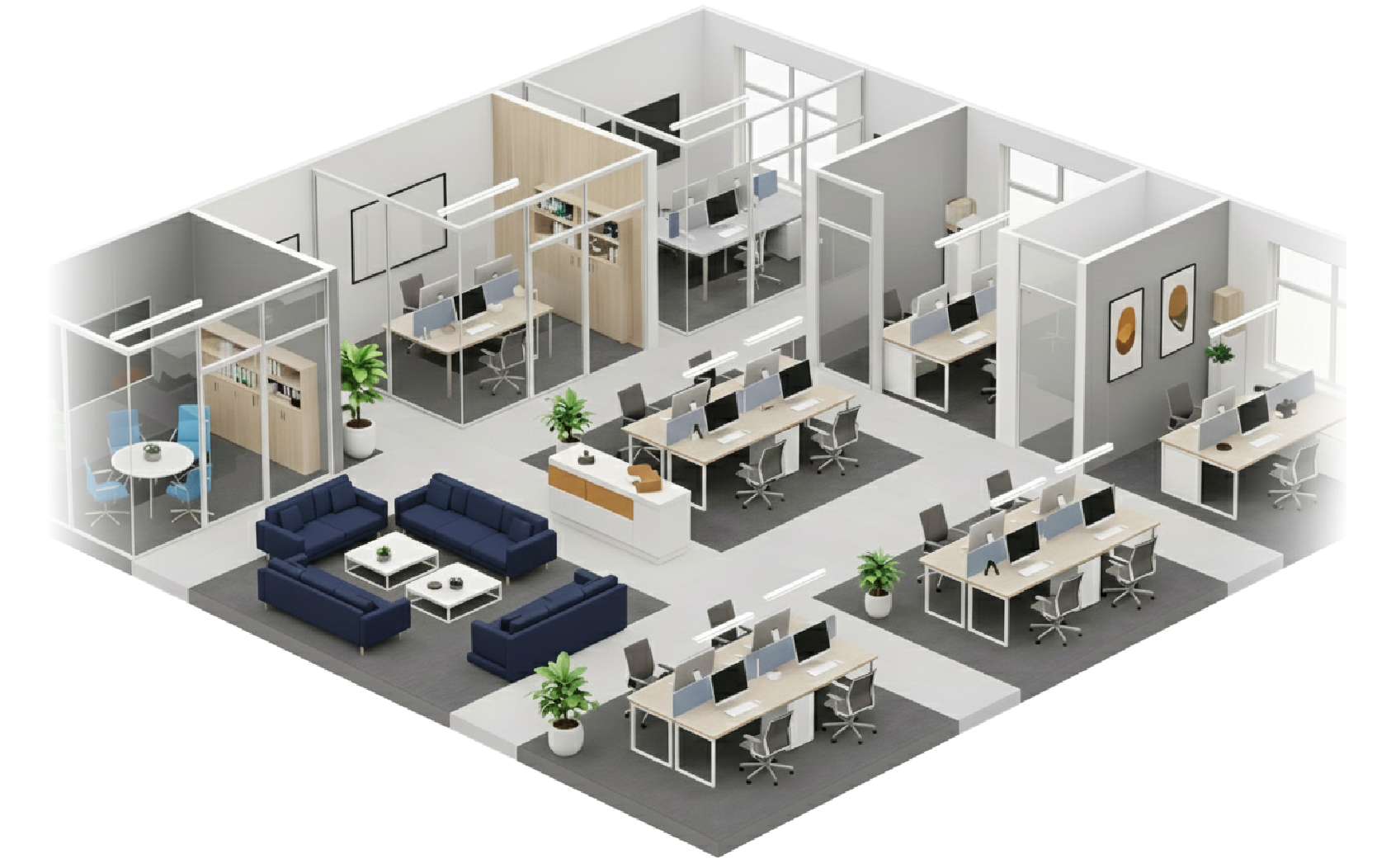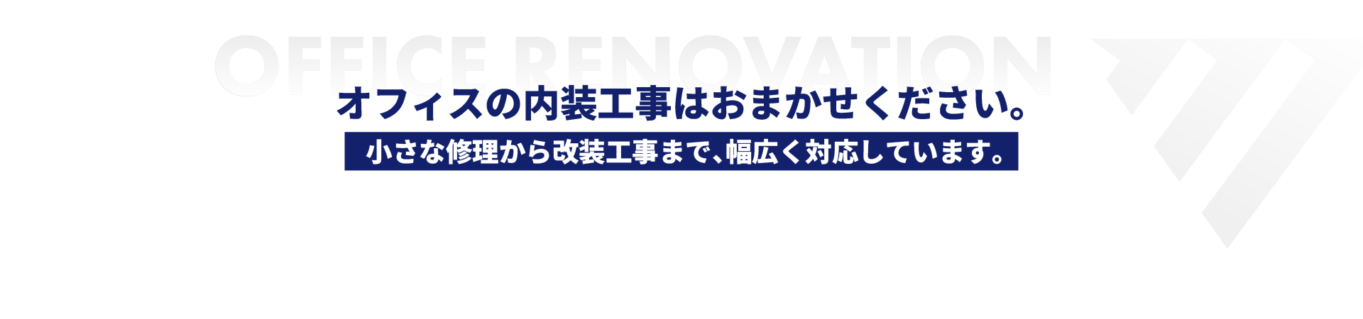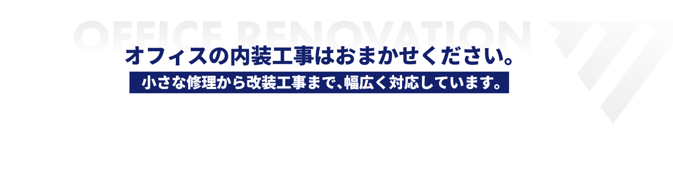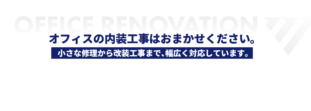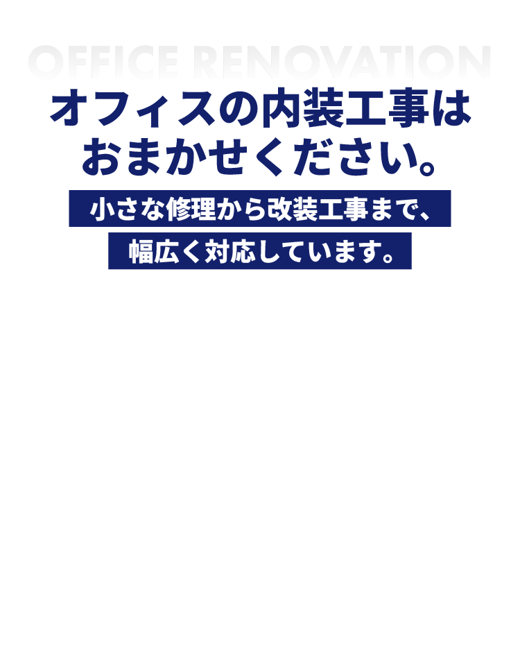 協力会社と連携し、案件の規模や内容に応じた最適な施工体制で対応しています。部分的なレイアウト変更や小規模工事から、オフィス移転に伴う内装工事・原状回復まで、状況に合わせた柔軟な進め方が可能です。